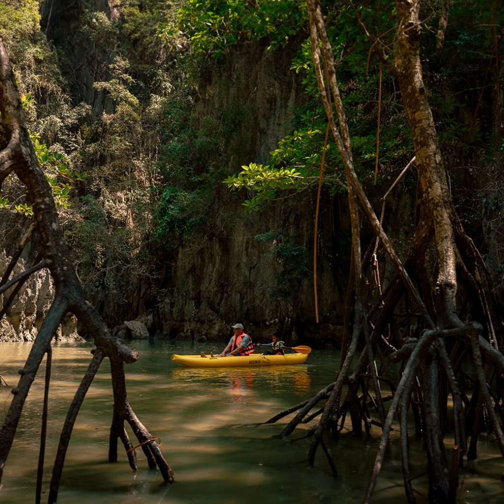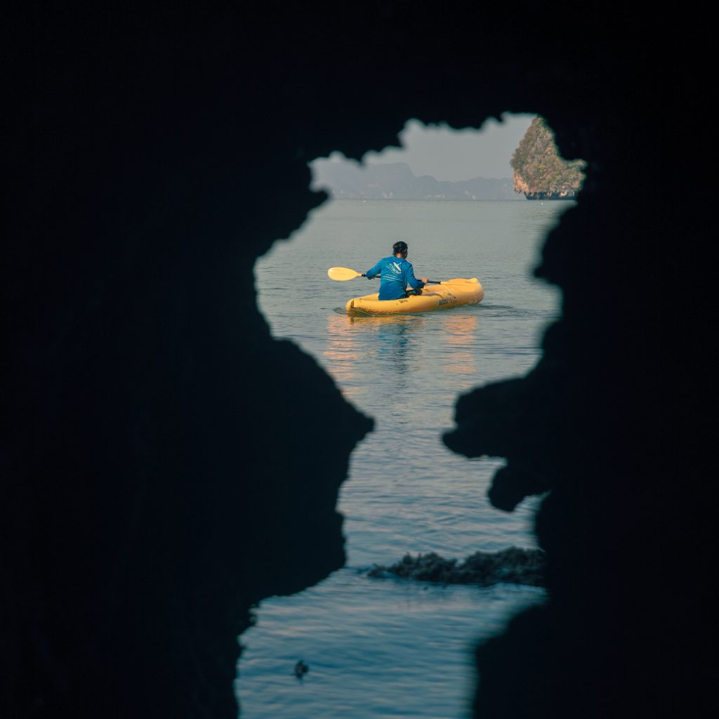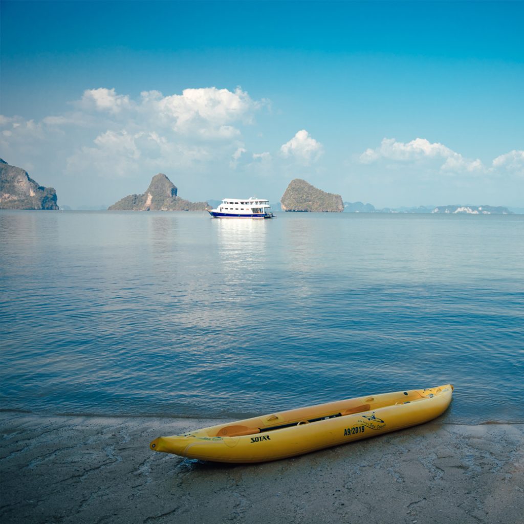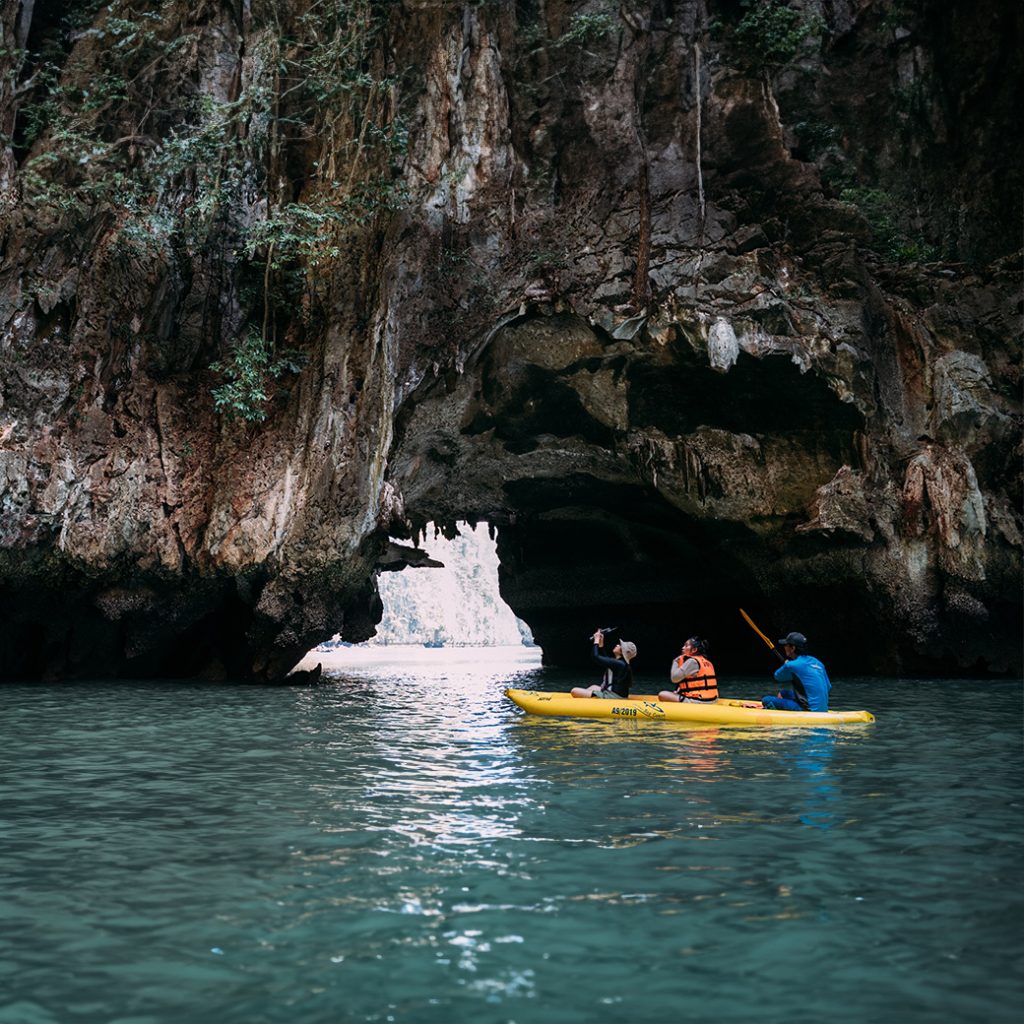 Explore Phang Nga Bay’s sea caves and hidden lagoons, discovered by John Gray in 1989. Begin mid-day to avoid crowds, with lunch served on our comfortable support boat. Paddle through the stunning “Tidal Nape Sea Caves” in custom SOTAR kayaks, guided by a professional. Marvel at the wildlife, including macaques and sea eagles.
